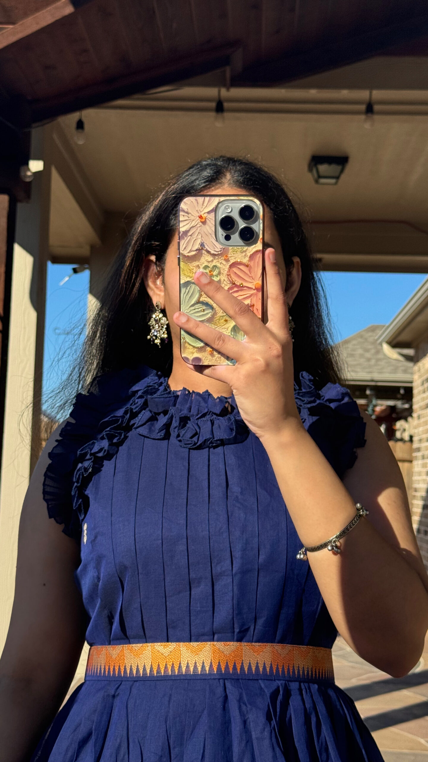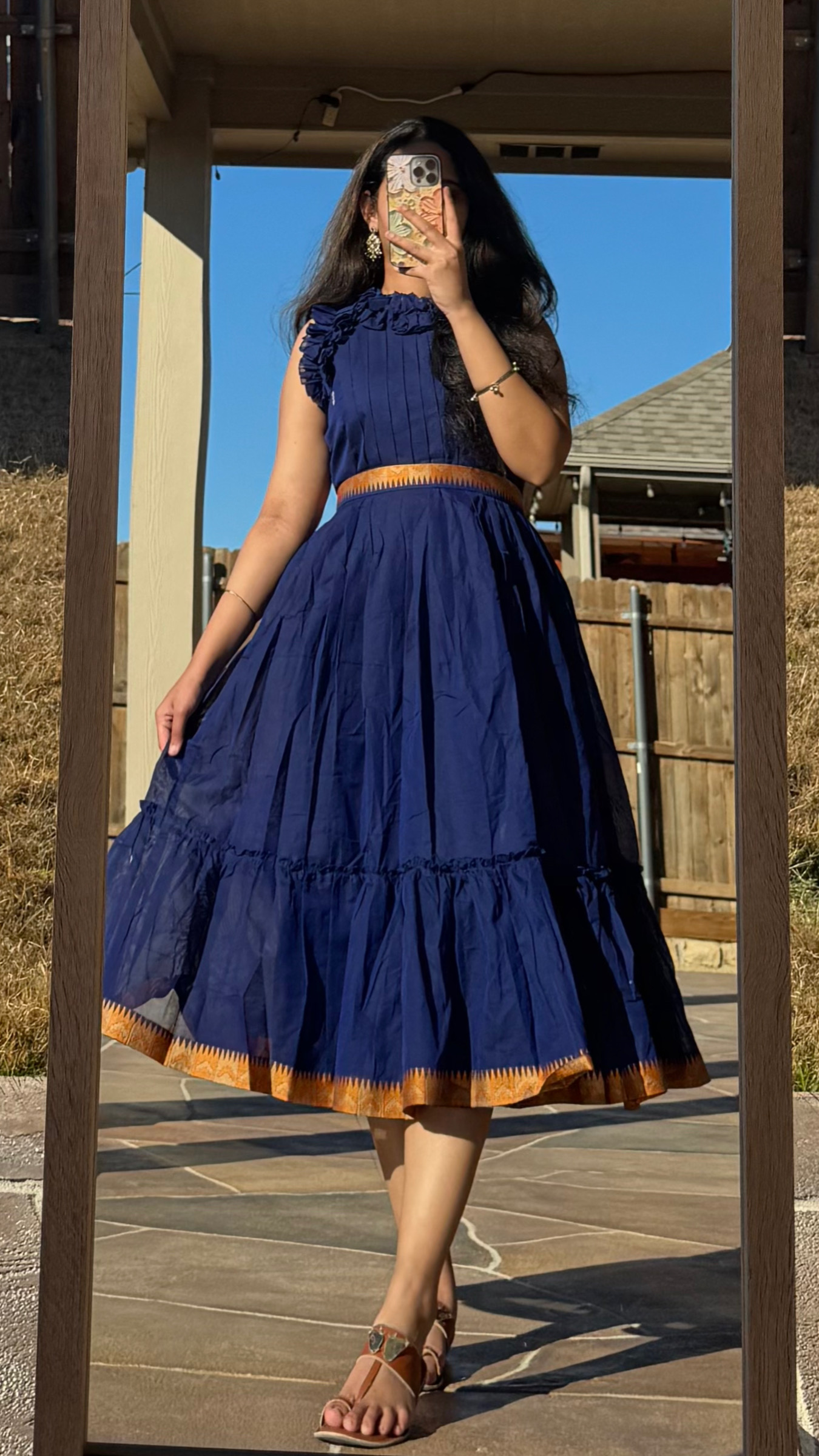 Ikkat cotton fabric with 120 count thread dress comes with bow and flare is 6 meters
