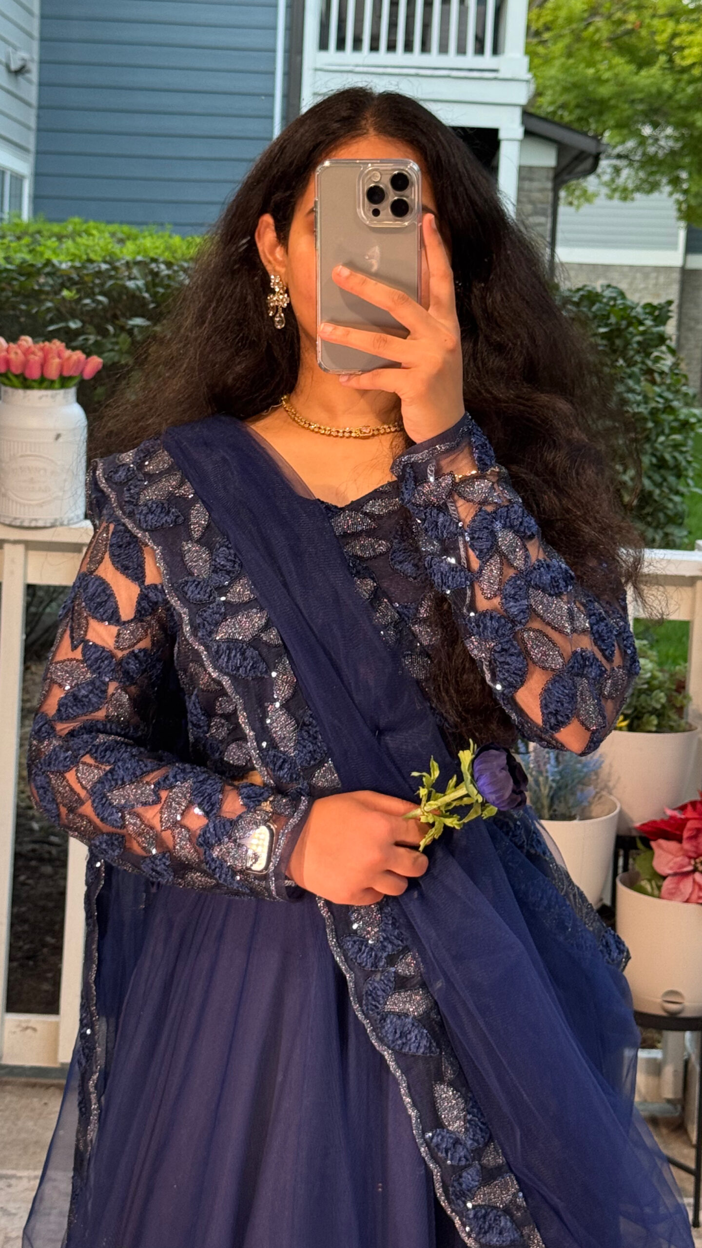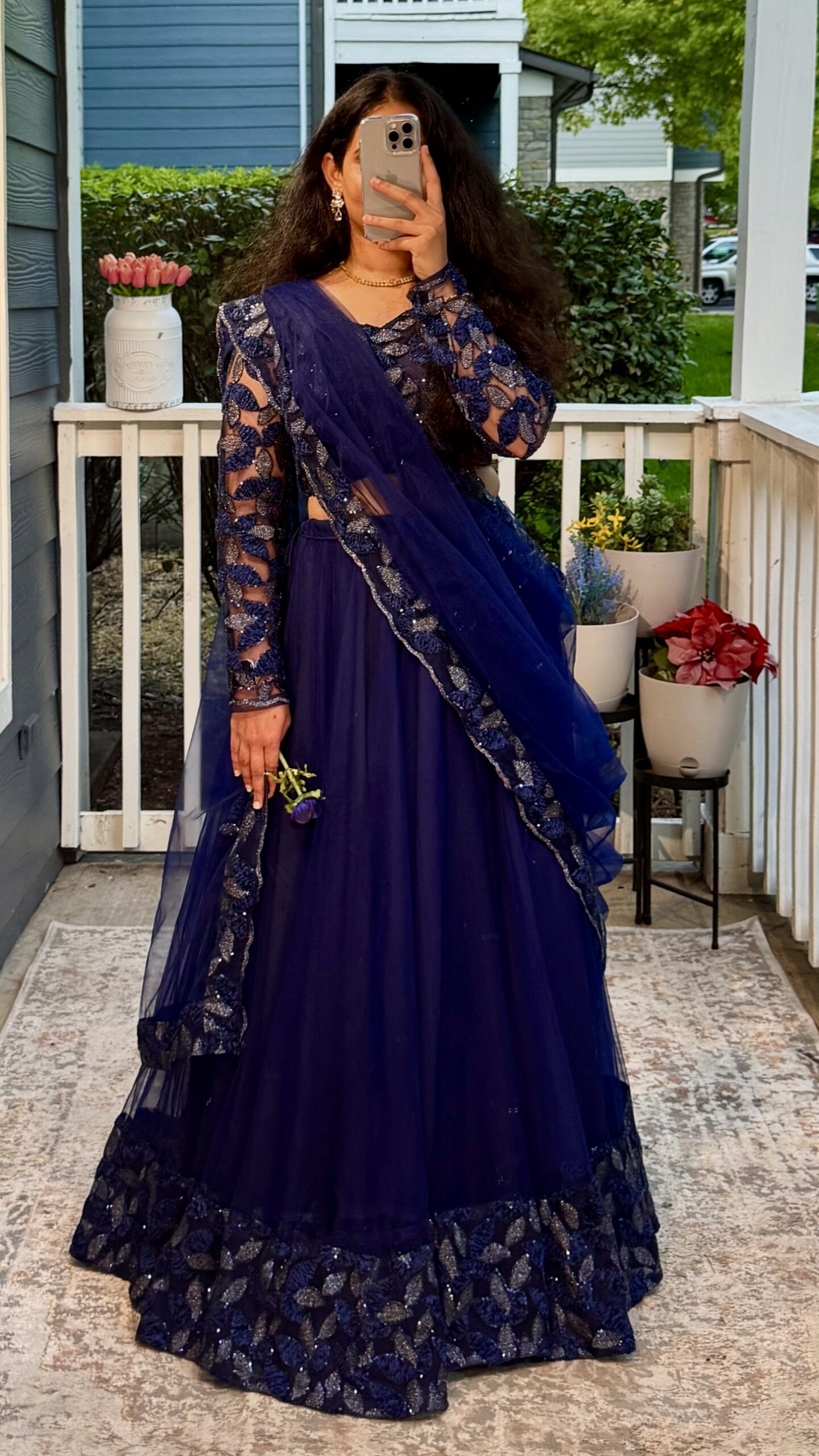 Zarikota fabric with silver and gold flower sequence all over the skirt with net duppata skirt flare is 6 meters