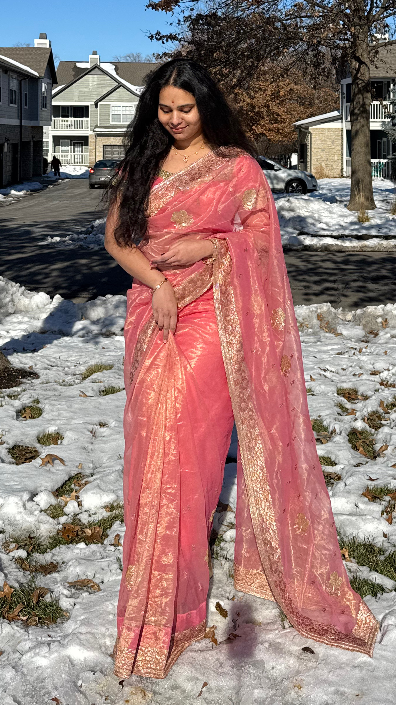 Tissue Georgette fabric with kundan sequence paired with bandhini blouse and bandhini Duppatta