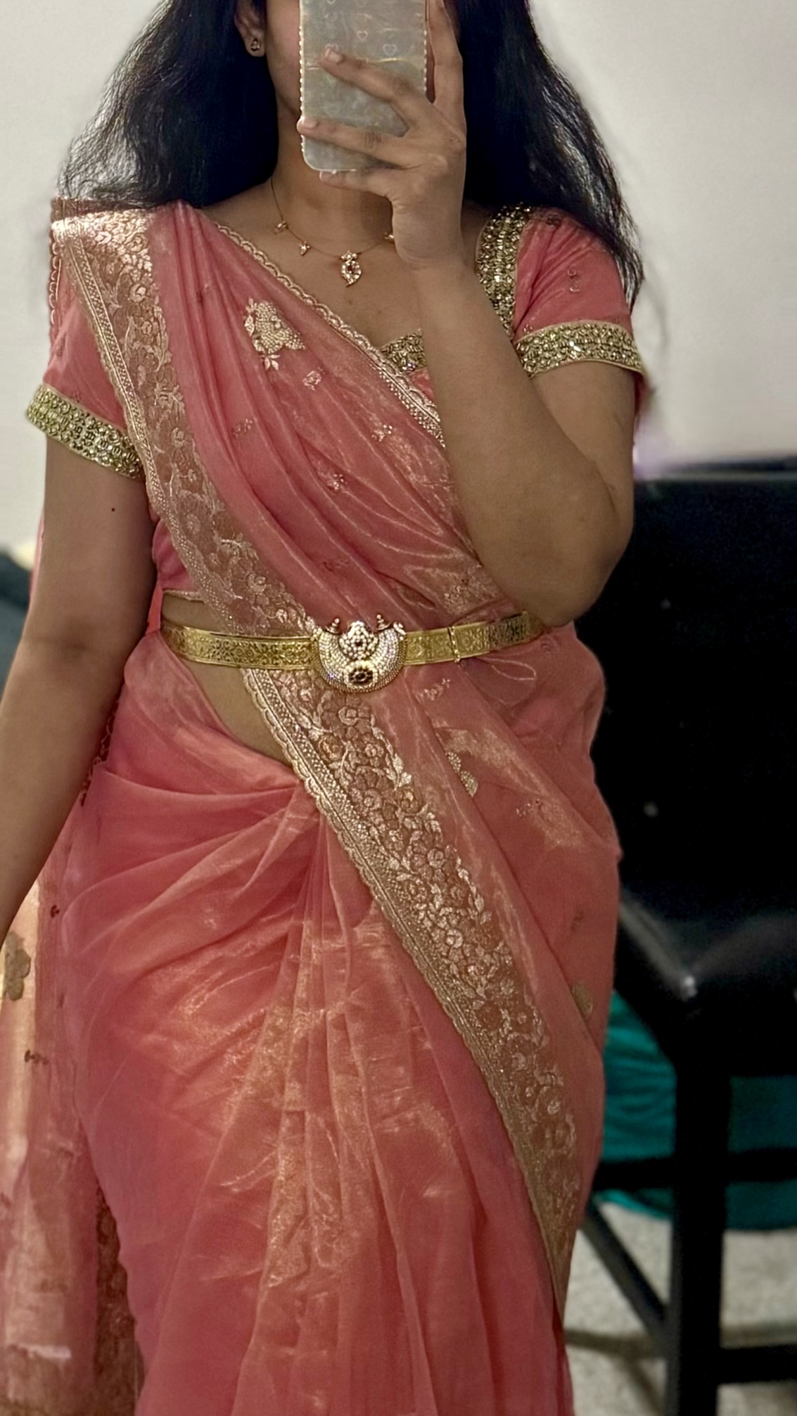 Fabric details : tissue fabric with gold zari thread embroidery saree(one minute saree)