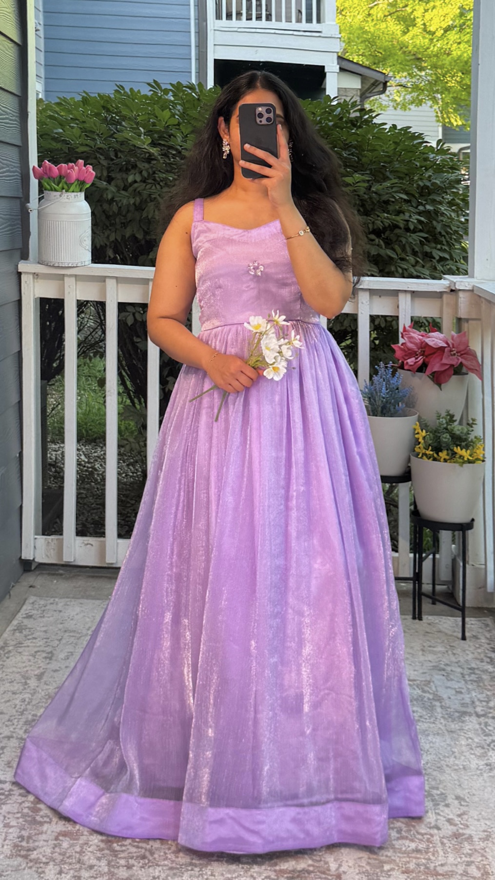 Muga pattu fabric with gold zari border comes with lining dress flare is 5.5 meters zip is attached