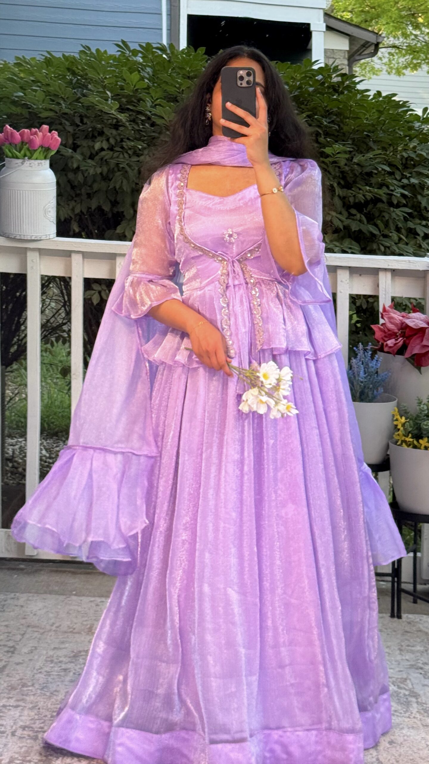 Floral soft georgette fabric comes with sleeves dress flare is 7 meters comes with lining sleeves can be customized please mention that in additional specifications box
