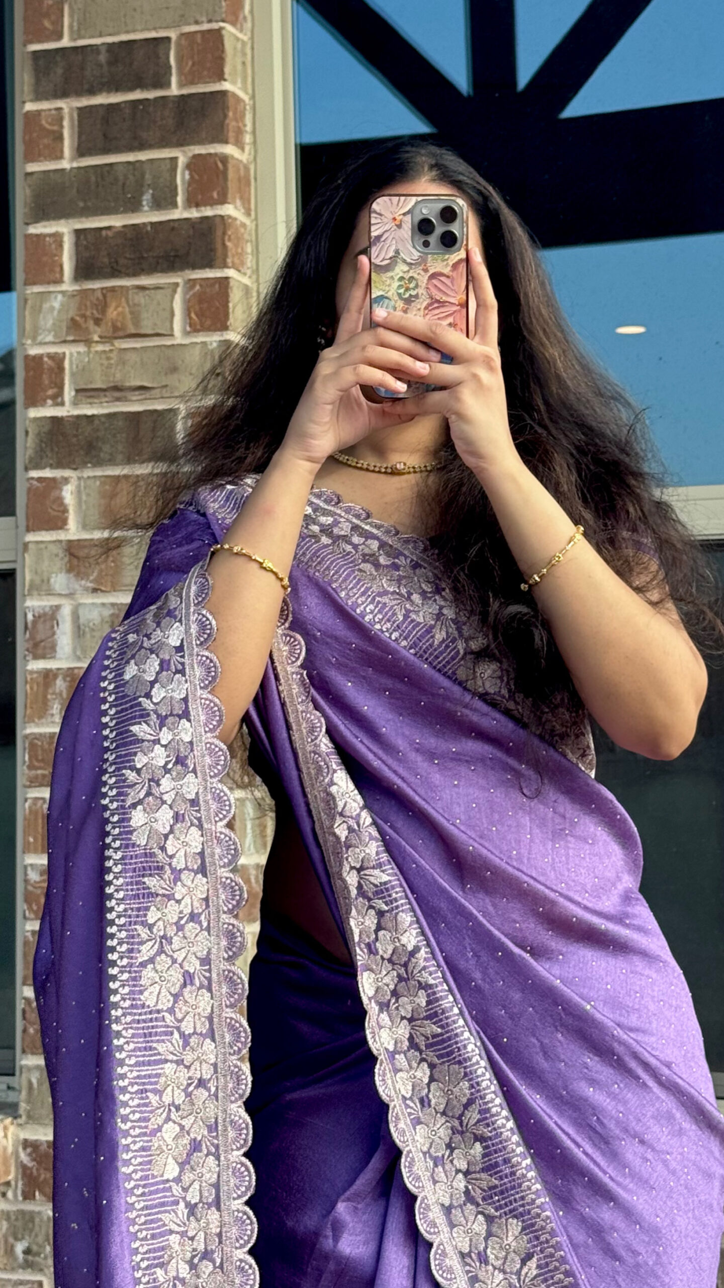 Zari kota lehenga with gold and silver flower zari flowers all over the skirt with gold zari borde, lehenga flare is 5.5 meters comes with lining zip is attached to both skirt and blouse with dori