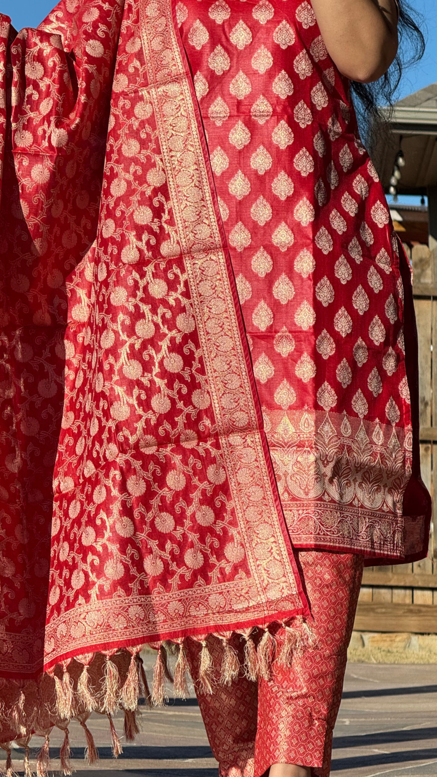 Sungudi handloom fabric with gold zari border with frills on yoke part sleeves can be customized comes with lining zip is attached
