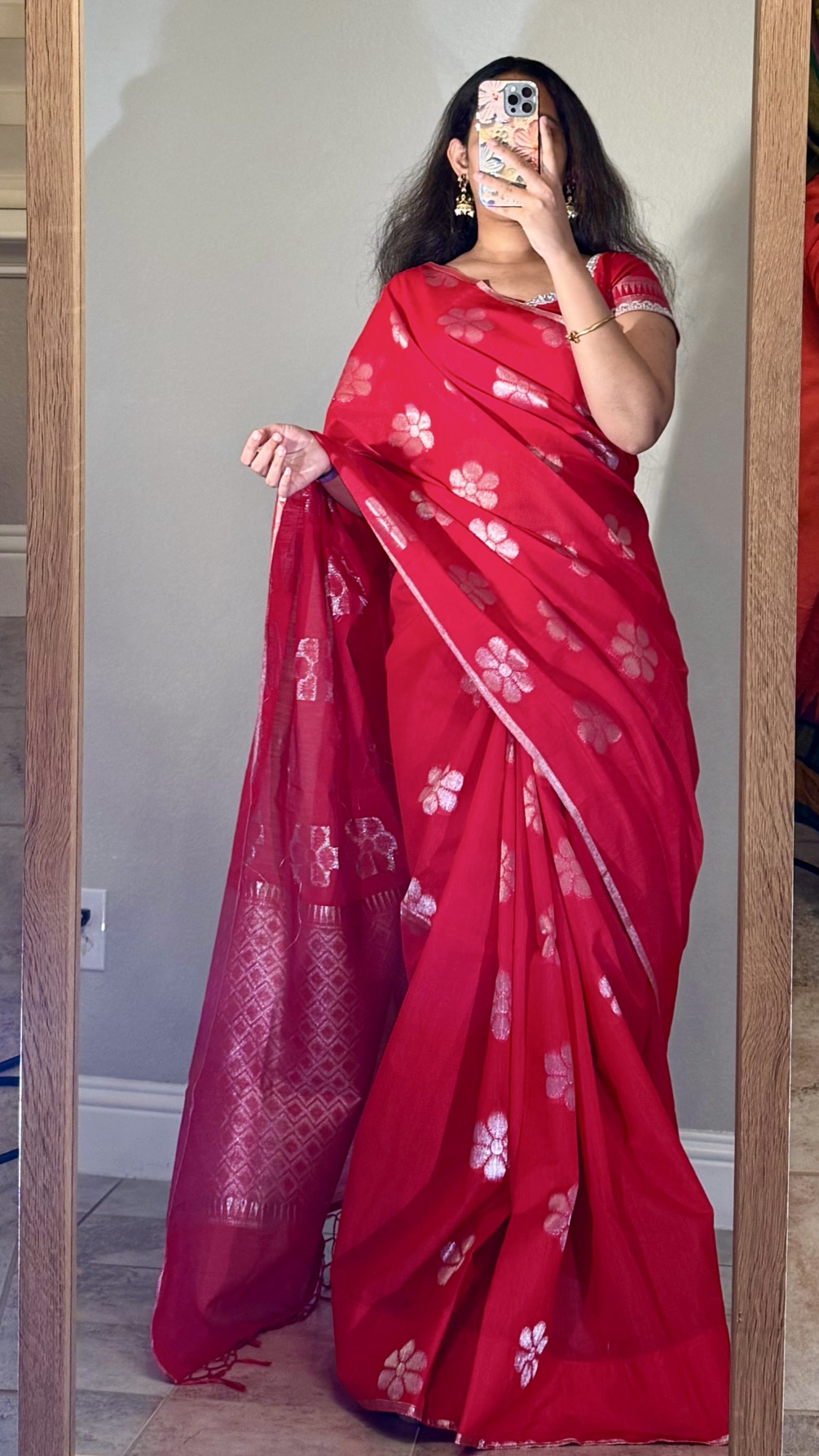 Kora banaras fabric with gold zari border and muslin Duppata with gold thread pearl embroidery