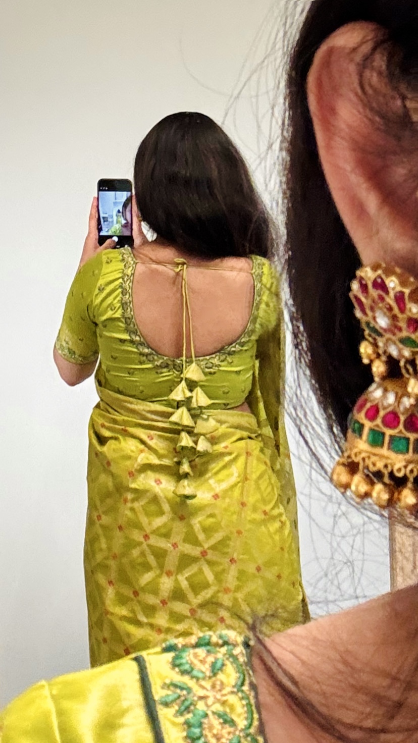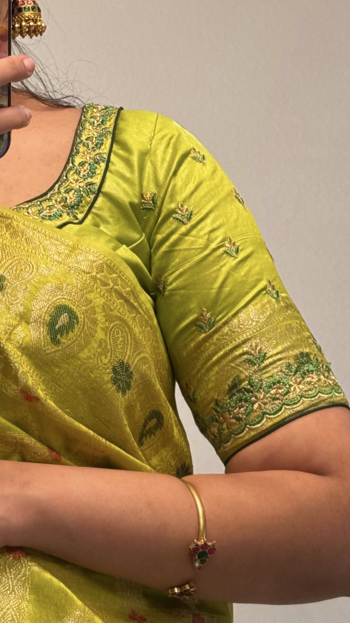 fabric details : Pattu banaras fabric with embroidered stitched blouse