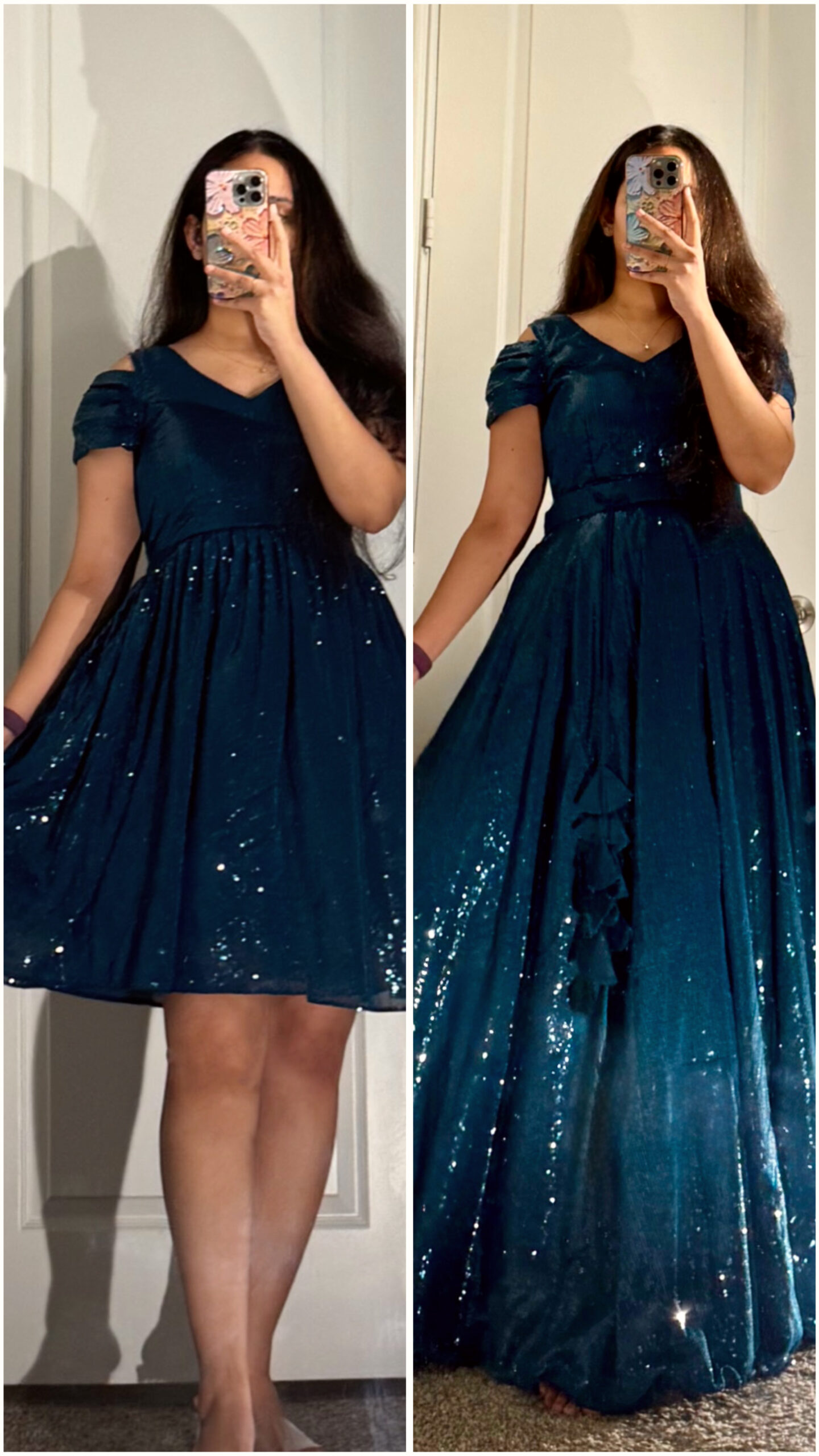 fabric details : sequence georgette fabric can be worn in 2 ways short frock and long frock both are detachable