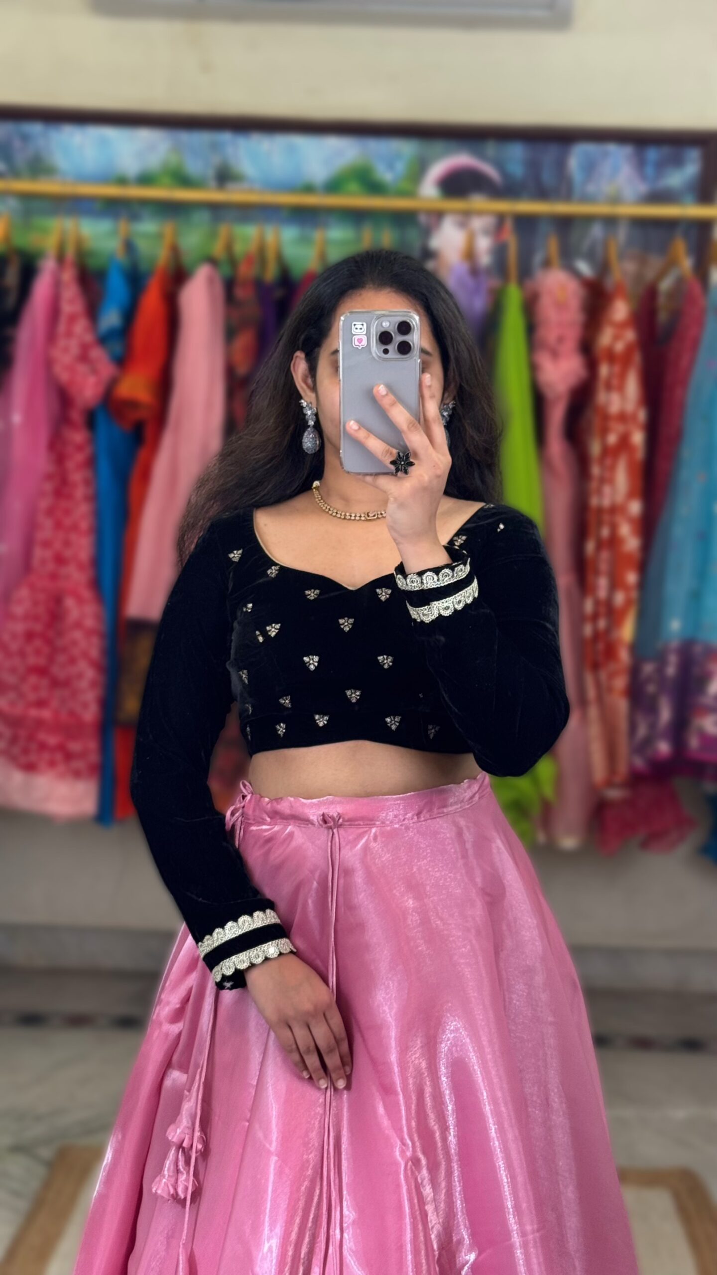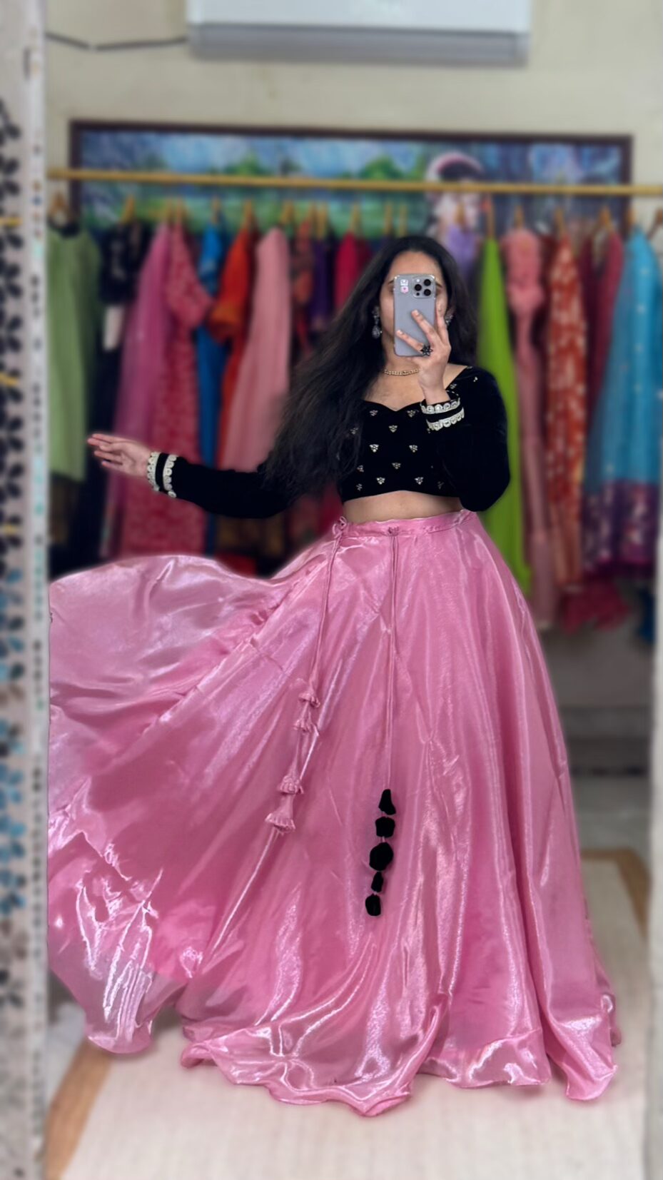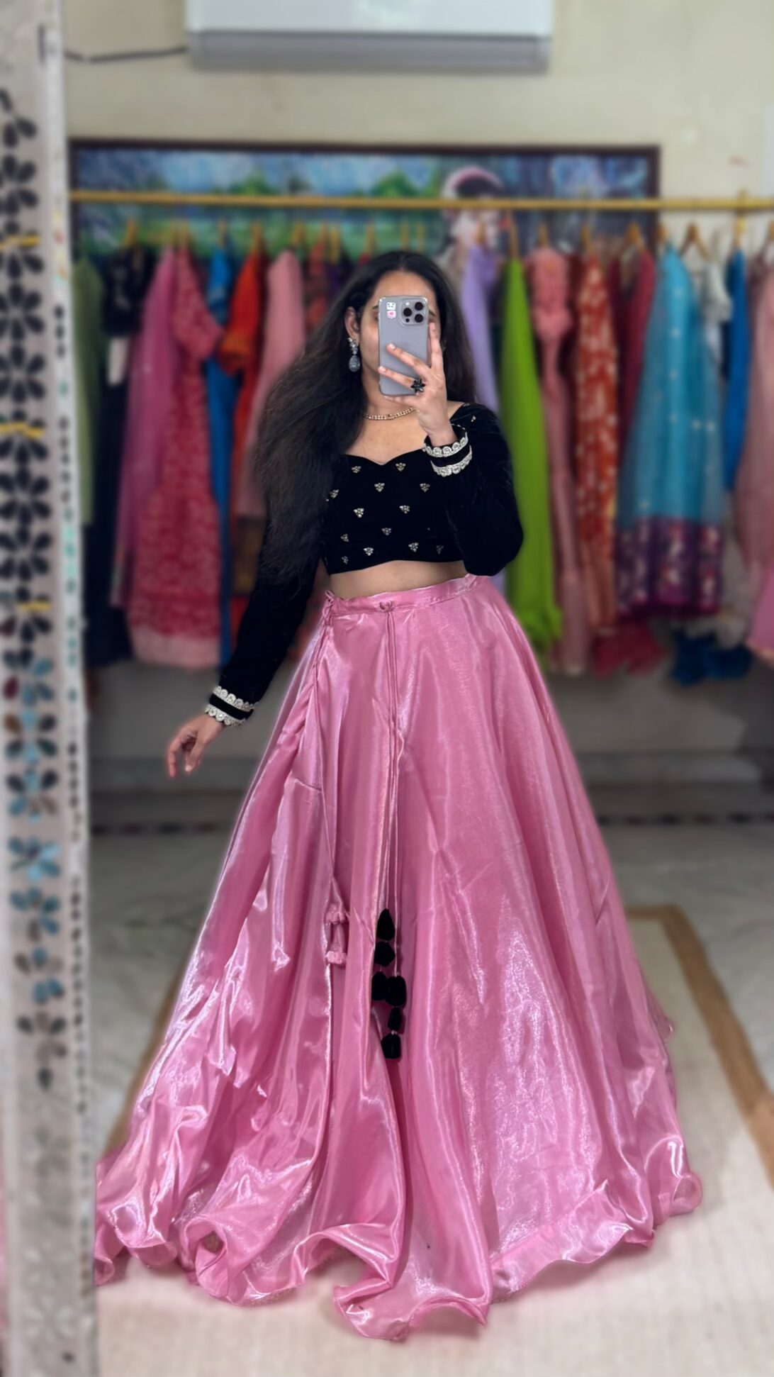 Korean silk fabric with detachable lace coat lehenga flare is 6 meters comes with lining zip is attached to both skirt and blouse