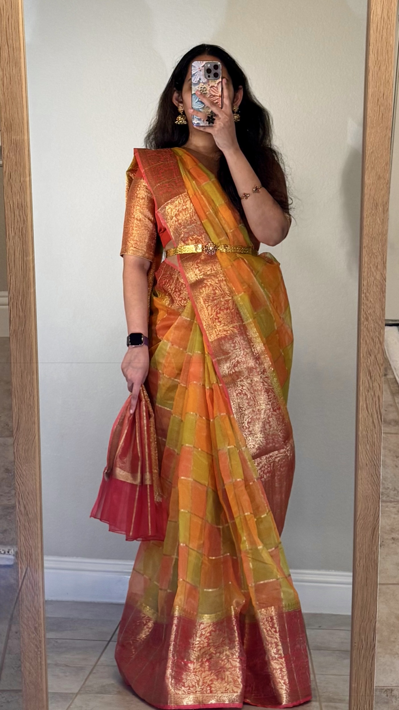fabric details : Organza rangkaat fabric with stitched blouse