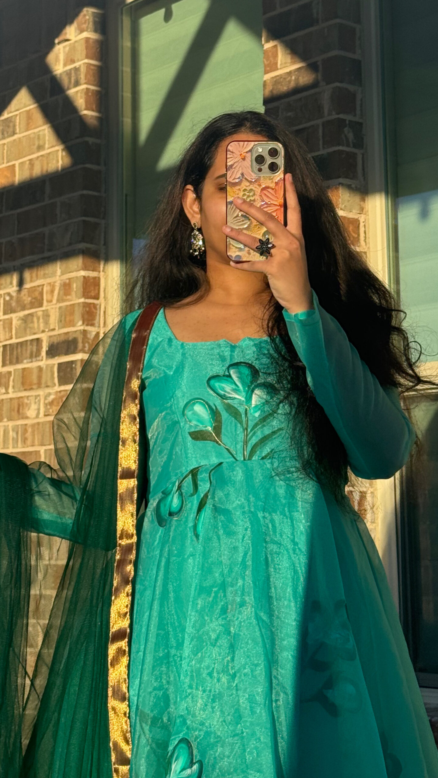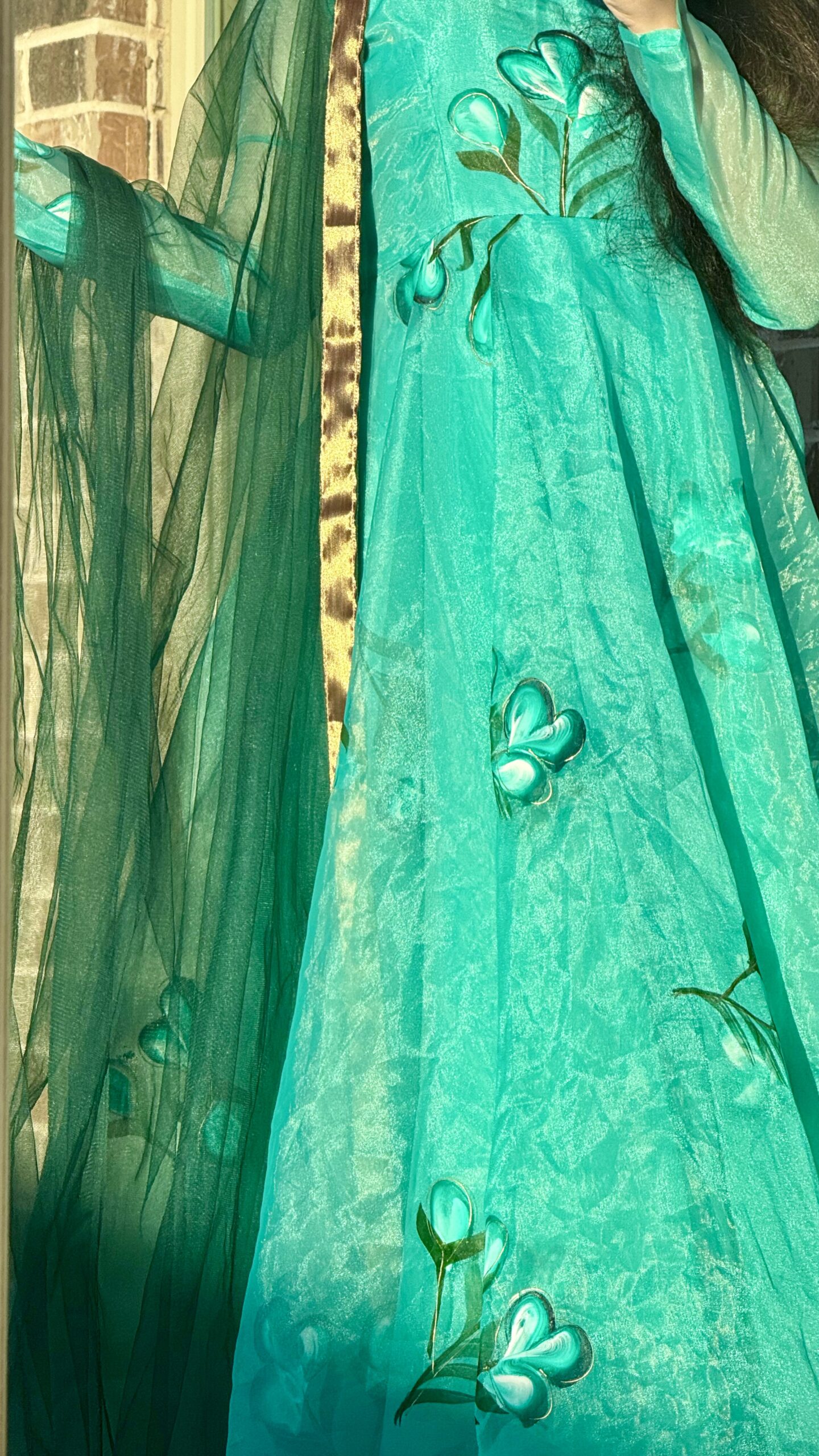 fabric details : organza hand painted fabric with net duppata