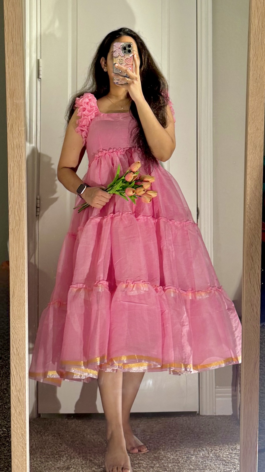 Net fabric with fabric dots adding little sparkle on the frock