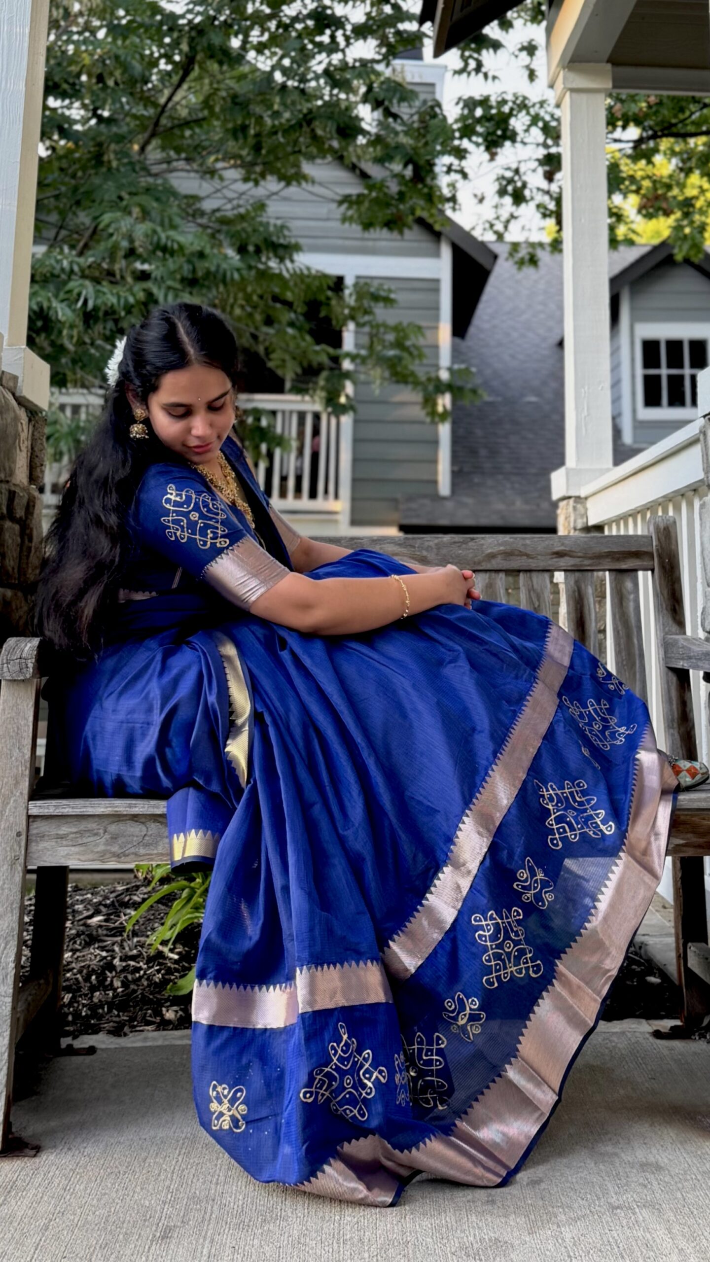 Zari kota lehenga with gold and silver flower zari flowers all over the skirt with gold zari borde, lehenga flare is 5.5 meters comes with lining zip is attached to both skirt and blouse with dori